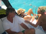 - der Witz: links Insel von Milliardär Branson, rechts vom Google-Gründer, in der Mitte ich mit Aldi-Bier