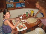 - die Mädels sind schon wieder am Kochen. Diesmal Pizza. YUMMY!